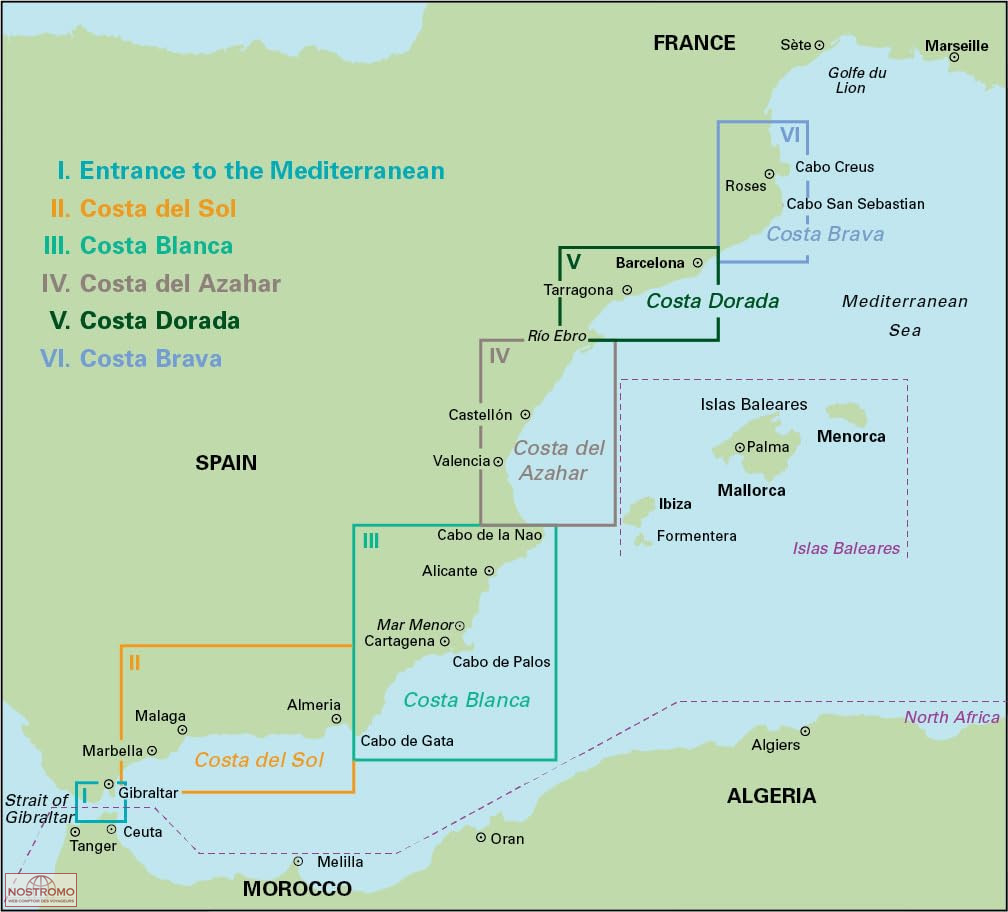 This is the only detailed pilot for the Spanish Mediterranean coast running up from Gibraltar to the border with France. It covers a varied cruising area that includes the mountain-backed Costas del and Sol and Blanca, the expansive lagoon of the Mar Menor, the low-lying Ebro delta and the rugged Costa Brava. In between are several great cities including Malaga, Valencia, Tarragona and Barcelona, the Catalan capital.