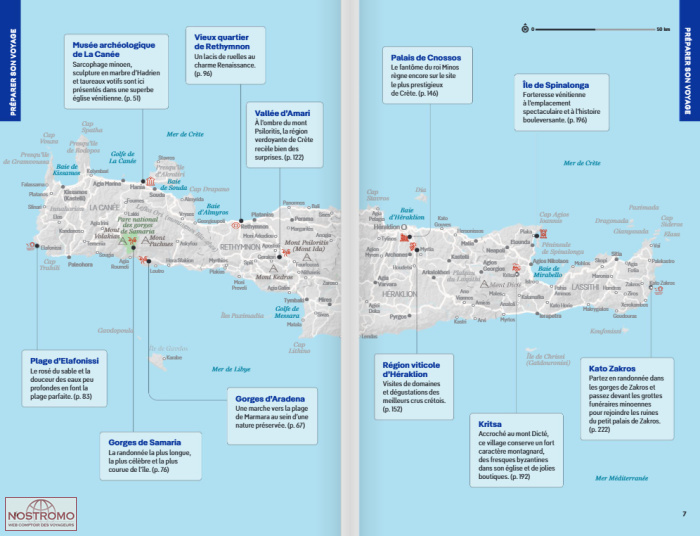 Les sites incontournables et les meilleures expériences d'un voyage en Crète : le top des plages et des petites îles, le palais de Cnossos, la vieille ville de La Canée et ses maisons vénitiennes, l'îlot d'Elafonissi, les gorges de Samaria, l'île de Spinalonga et son superbe itinéraire de randonnée, le monastère et la plage de Preveli, le plateau du Lassithi...