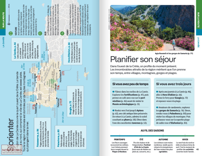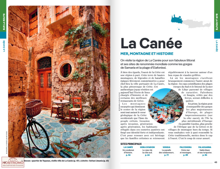 Des suggestions de balades et d'itinéraires thématiques à pied, à vélo ou en voiture : découverte de la vieille ville de La Canée, excursion dans la vallée d'Amari, tour des vignobles dans la région d'Héraklion...