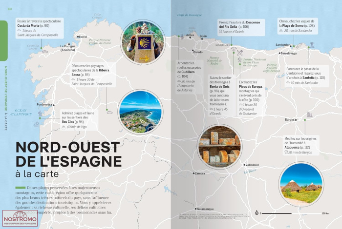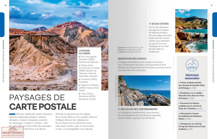 Une autre manière de découvrir l'Espagne : descendre en paddle le Guadalquivir, assister à un match au Camp Nou, observer les oiseaux du parc national de Donana, faire ses courses sur les marchés de Madrid, participer à la Feria de Abril à Séville, randonner dans la Sierra Nevada, se croire dans un western dans le Desierto de Tabernas, cheminer avec les pèlerins vers Saint-Jacques de Compostelle, se régaler des goûteux fromages des Asturies.