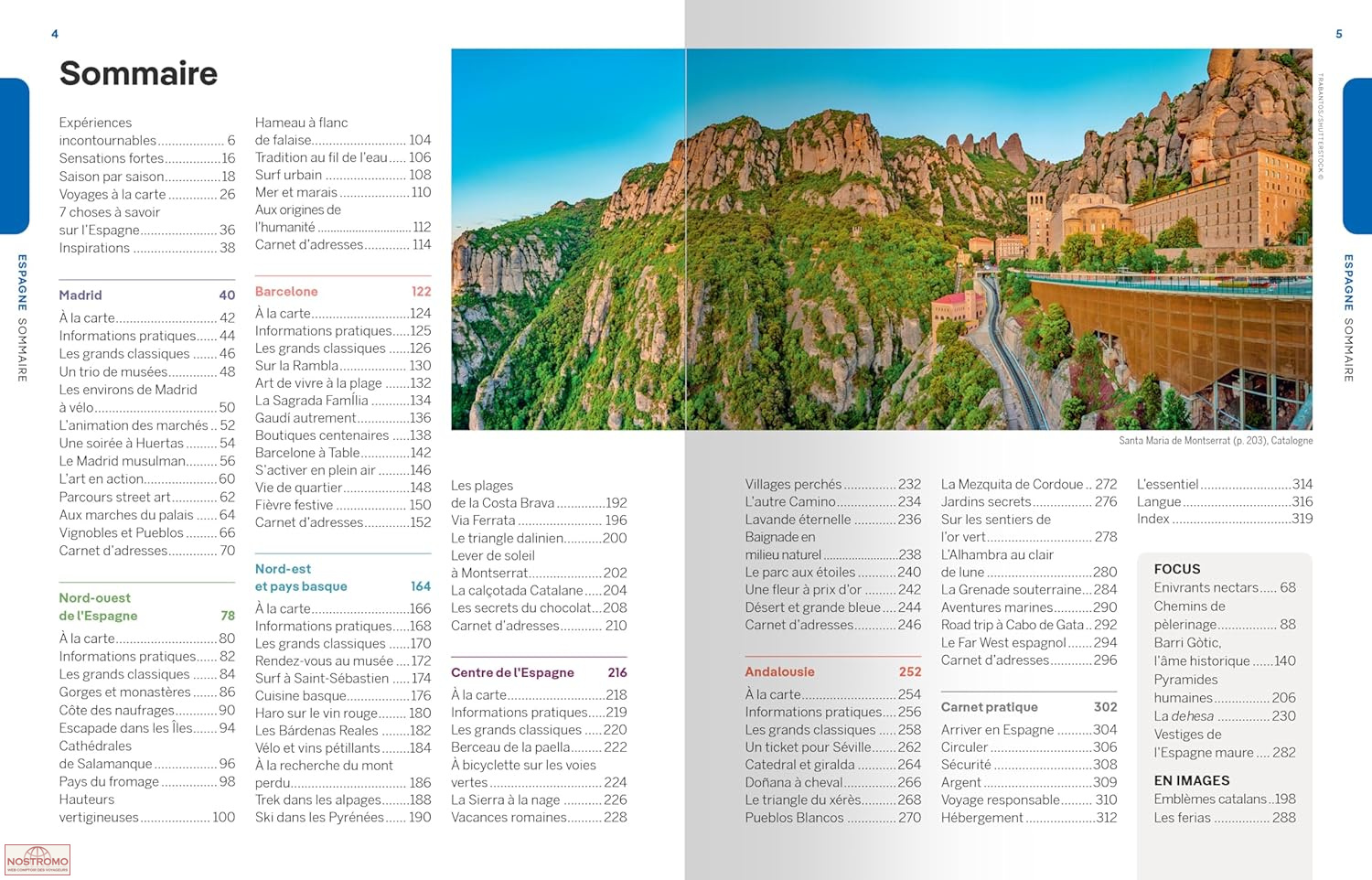 Les villes et régions d'Espagne à ne pas manquer (Barcelone, Madrid, Valence, Séville, Cordou, Grenade, Bilbao, Burgos, les Pyrénées...) traitées sous forme d'activités, de promenades et de visites incontournables ou insolites.