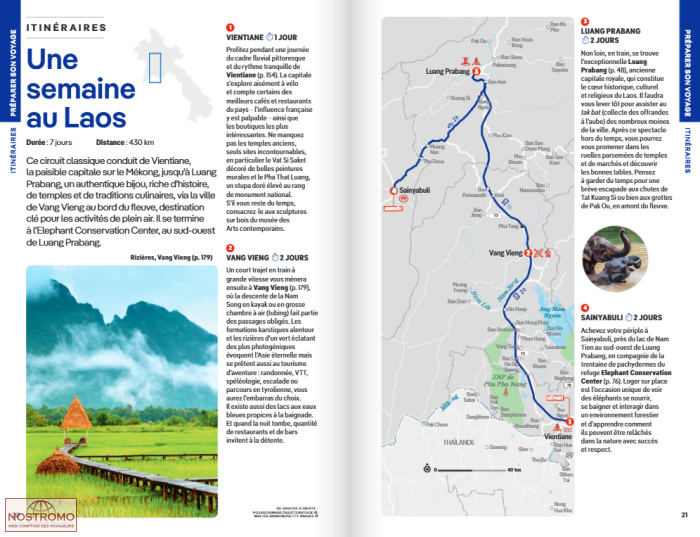 Une sélection inspirante et très pratique d'itinéraires régionaux pour découvrir le meilleur du Laos, en toute saison, quel que soit le temps ou le budget disponible. Et aussi de dépaysants circuits en forêt durant lesquels on peut traverser des villages de communautés ethniques ; de belles et confortables croisières sur le Mékong, au rythme indolent, des circuits de plusieurs à moto (boucle de Tha Khaek).