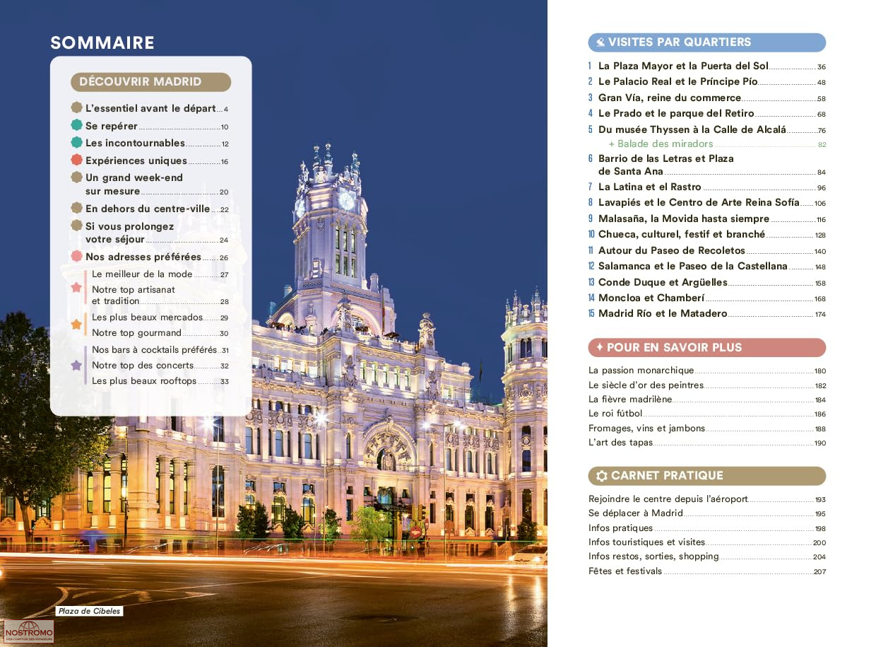 • Les meilleures adresses soigneusement sélectionnées par nos auteurs : les meilleurs mercados pour acheter les produits gourmands, le top des lieux où déguster les meilleures tapas, les plus beaux rooftops, nos lieux préférés pour écouter du live rock ou de l'électro, les boutiques des créateurs madrilènes…