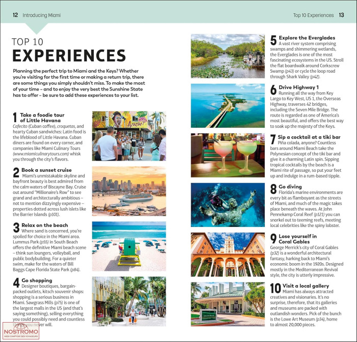 - Top 10 lists of Miami and the Keys’ must-sees and must-dos, including visiting South Beach, wandering around the Art Deco district and taking a boat trip in the Everglades