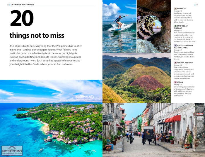- Must-see pick - unmissable sights handpicked by our authors - Boracay, surfing at Siargao, Apo Reef Marine Natural Park, Chocolate Hills, Vigan, whale sharks, Mount Mayon, Ati-Atihan Festival, Batanes, Malapascua, Coron Island, Mount Pinatubo, underground river, rice terraces, tarsiers
