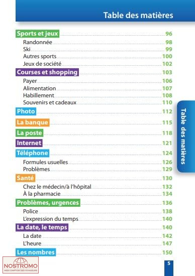 La troisième partie est constituée d'un lexique d'environ 4 500 mots et expressions. En supplément : Les adresses et numéros de téléphone utiles à l'étranger et la liste des fêtes et jours fériés.
