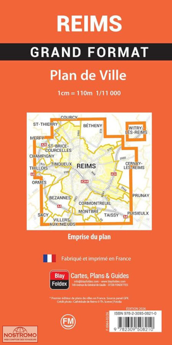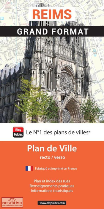 The large-format Reims city map provides all the details of this sub-prefecture of the Marne department in the Grand Est region. The "City of Coronations" boasts over 2,000 years of history and has been designated a UNESCO World Heritage Site twice. Reims, at the heart of French history: The large-format Reims city map invites you to discover this sub-prefecture of the Marne, home to 183,500 inhabitants. The city is situated at an altitude of 90 meters on the right bank of the Vesle River, a tributary of the Aisne, and on the Aisne-Marne Canal, in a vast plain surrounded by hills and slopes covered with vineyards that produce a world-renowned wine: Champagne. Reims has a favorable geostrategic location at the crossroads of major European axes A4 (E50), A26 (E17), A29 and A16 (via the A26), on the TGV Est line, an airport platform with international capacity.