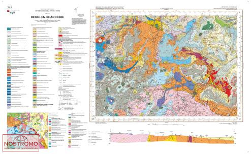 Les cartes géologiques du BRGM sont des cartes topographiques sur lesquelles sont superposées des informations géologiques (nature, géométrie, âge, origine, structure etc.).Elles sont publiées au 1/50.000 (2 cm sur la carte = 1 km sur le terrain), échelle de référence pour les travaux d'aménagement et de prospection. Notice explicative détaillée téléchargeable sur le site du BRGM.