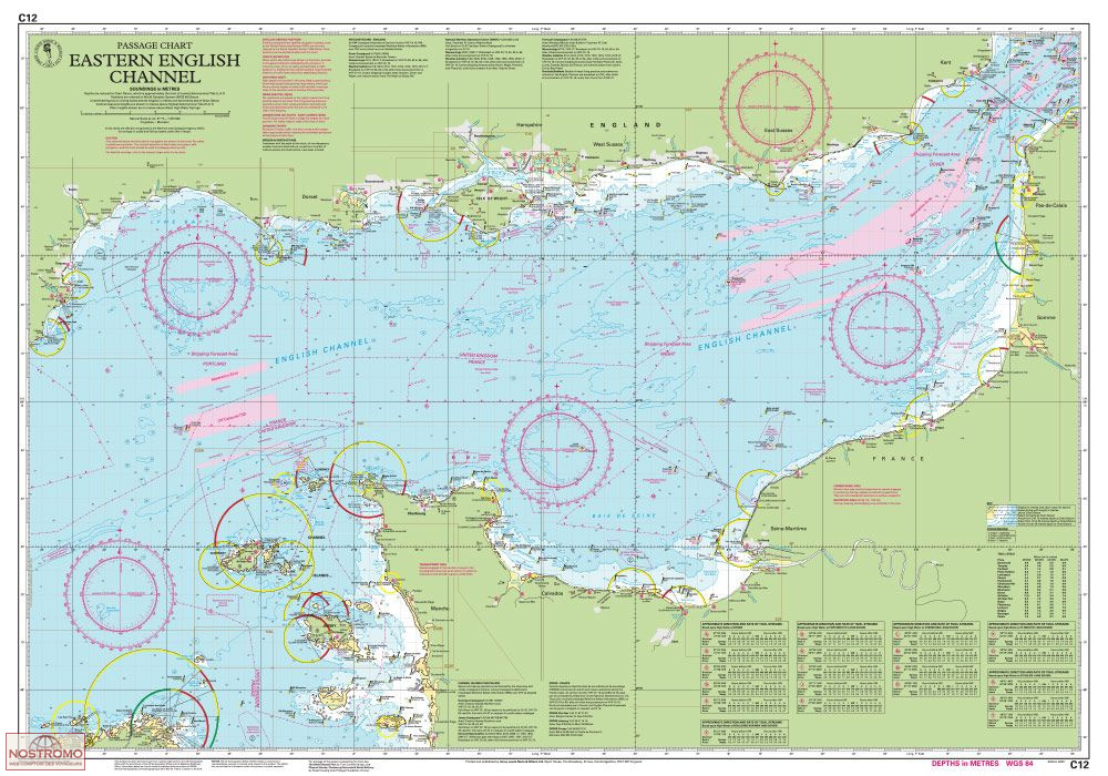 Cette carte a été repensée parallèlement à la carte de navigation C10 de la Manche occidentale afin d'offrir une couverture homogène de la Manche à la même échelle (1:375 000).