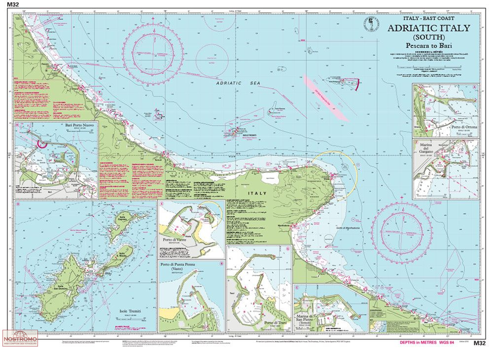 Pour cette édition 2023, la carte a été entièrement mise à jour. Les profondeurs révisées sont indiquées, notamment à Ortona et Bari Porto Nuovo, ainsi que les aménagements portuaires à Ortona et aux îles Tremiti. Un nouveau plan pour Marina di San Pietro (Termoli) a été ajouté.