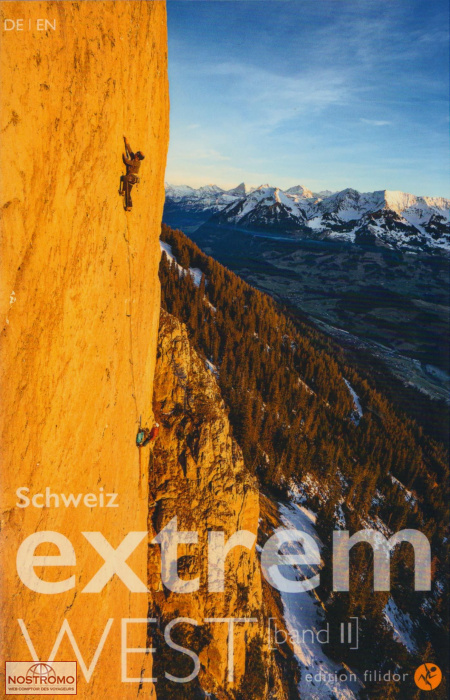 The Schweiz Extrem West Band 2 guidebook (topo) describes a selection of extreme multi-pitch routes at grades from F6a and above, in the Western Swiss Alps around Interlaken. It covers an area from Fribourg via the Bernese Oberland to Vaud as well as some areas in Valais.