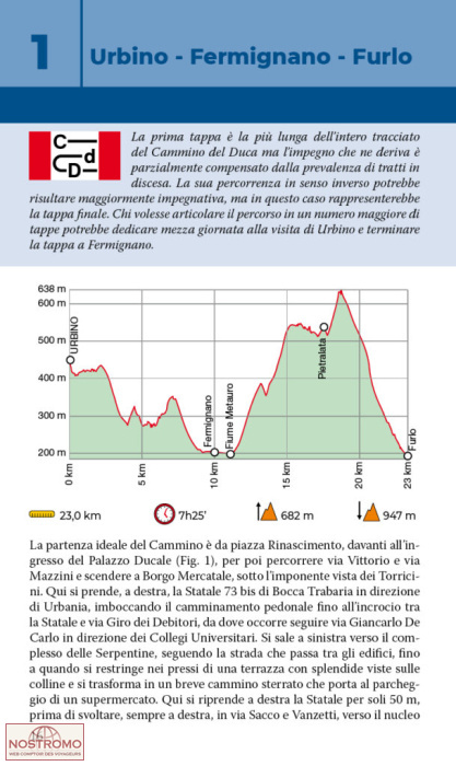 Il s'agit d'un itinéraire d'environ 100 km reliant Urbino et Gubbio, villes liées à la vie du duc Federico da Montefeltro, en traversant les communes de Fermignano, Acqualagna, Cagli, Frontone, Serra Sant'Abbondio, Scheggia et Pascelupo.