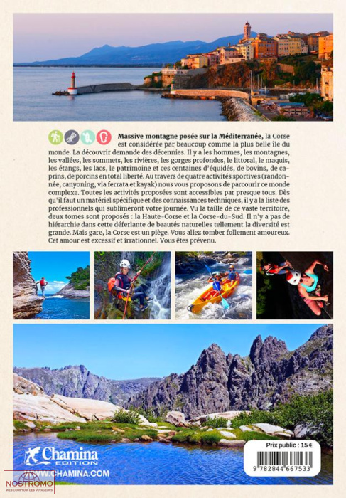 Ce guide vous propose un voyage inédit en Haute-Corse avec 25 aventures pour tous, maintes fois vécues et testées par l'auteur de cet ouvrage. Se mêlent la randonnée, le canyoning, la via ferrata et le kayak. Dès qu'un matériel spécifique s'impose, il y a des prestataires pour vous accompagner (canyoning) ou des points de locations (via ferrata et kayak) au départ de ces réjouissances.