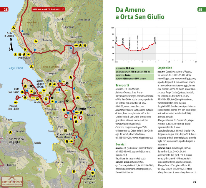 L'itinéraire comprend des haltes au bord de l'eau et des vues imprenables, au milieu des châtaigniers et des hêtres, ainsi que des lieux propices à l'imagination, comme le parc inspiré par Gianni Rodari, né ici à Omegna. En été, une baignade dans les eaux claires est également possible.