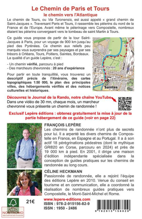 Ce guide vous propose de partir de la tour Saint- Jacques à Paris, pour un voyage de 900 km jusqu’au pied des Pyrénées. Ce chemin aux reliefs peu marqués vous surprendra par ses paysages et par ses trésors à Orléans, Tours, Poitiers, Saintes, Bordeaux.