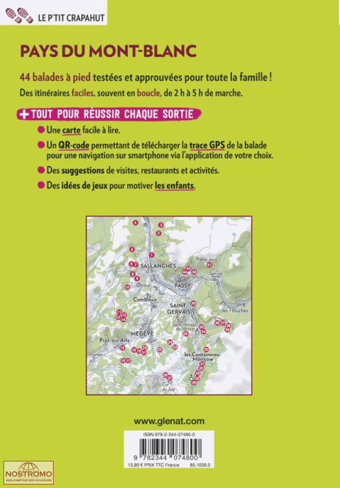 44 balades en montagne destinées aux familles et aux randonneurs débutants dans les secteurs de Saint-Gervais, Les Contamines, Megève, Praz-sur-Arly, Cordon, Combloux, Sallanches, Saint-Nicolas-de-Véroce sur les chemins parcourant les alpages ou sur les nombreux sentiers balisés et entretenus conduisant sur des crêtes ou vers des sommets d’où l’on embrasse l’ensemble d’un paysage souvent grandiose. Les balades proposées dans ce guide offrent ainsi une grande diversité d’ambiances et des paysages sur les sentiers du val Montjoie du haut val d’Arly et la haute vallée d’Arve, imprenables balcons du mont Blanc.