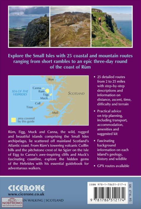 Guidebook to 25 coastal and mountain walks on the Small Isles of Rum, Eigg, Muck and Canna, suitable for a range of abilities. Explore this wild and rugged archipelago off Scotland’s west coast, where volcanic peaks, dramatic cliffs and quiet shorelines offer some of the Hebrides’ most rewarding walking. Highlights include the towering Cuillin of Rum, the pitchstone ridge of An Sgùrr on Eigg, Canna’s spectacular sea cliffs and Muck’s fascinating coastline.