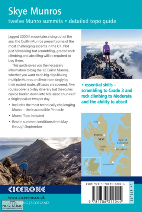 Un guide de référence en deux volumes pour les 12 Munros de la chaîne des Cuillin, sur l'île de Skye – les sommets les plus exigeants techniquement d'Écosse, culminant à 914 mètres (3 000 pieds) au-dessus de la mer. Bien plus qu'une simple randonnée, ces sommets requièrent des techniques d'escalade de niveau 3, de l'escalade jusqu'à un niveau modéré, du rappel, une bonne maîtrise technique, le vertige et une grande aisance sur les terrains rocheux escarpés et exposés. Cet ouvrage s'adresse aux randonneurs expérimentés, aux adeptes des Munros et aux grimpeurs chevronnés souhaitant gravir les sommets de la chaîne des Cuillin en toute sécurité et efficacement.
