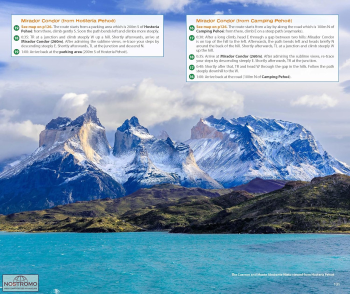 Le guide de référence du parc national Torres del Paine. Il couvre tous les treks, y compris les circuits O, W et Q, ainsi que les randonnées à la journée. Informations complètes pour les campeurs et les randonneurs en refuge : tout ce dont vous avez besoin pour planifier et randonner à Torres del Paine, vous évitant ainsi de passer des heures à chercher des informations éparses sur Internet.