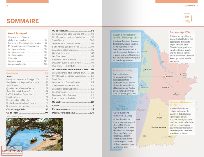 - Des itinéraires à vélo et sans voiture : un cahier détachable réunit deux parcours à vélo emblématiques –; la Vélodyssée de la pointe de la Grave à Cap-Breton, l'estuaire de la Gironde –; avec les traces GPX pour suivre chaque trajet en temps réel. Le guide propose aussi des itinéraires sans voiture, de 3 jours à 15 jours, pour visiter la Gironde et les Landes autrement.
