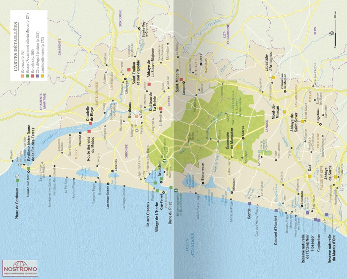 - Des cartes détaillées de la Gironde et des Landes ainsi que de leurs villes emblématiques.