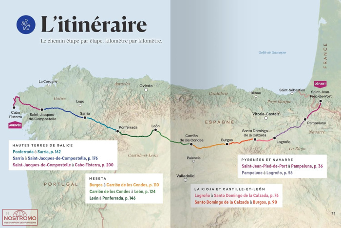Et bien sûr, toutes les informations pratiques pour organiser son chemin et se lancer à son tour dans cette belle aventure (organisation de son sac, préparation physique, obtention de la crédenciale, balisage...).