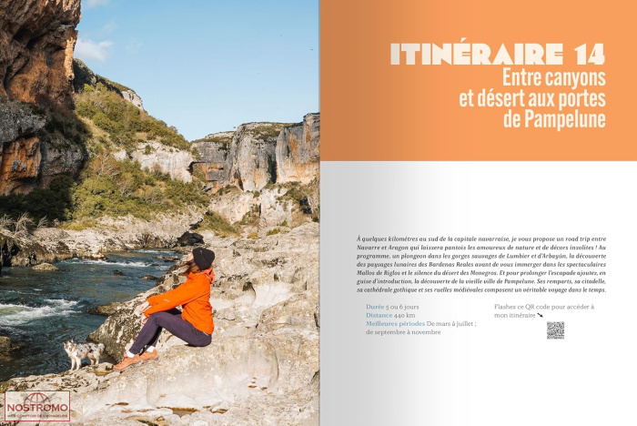 Pour chaque road trip, toutes les informations pratiques pour réaliser son aventure : durée, distance, spots où s'arrêter, carte de l'itinéraire et QR code pour accéder à une carte interactive...
