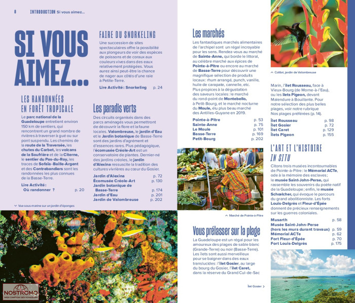 Dans ce titre Guadeloupe, suivez les conseils de Viviane Pajamandy et Gaby Badlou, deux Guadeloupéens d’origine follement amoureux de leur archipel, au point d’y consacrer le blog passionnant « We Love Guadeloupe ». Ils vous proposent un voyage tout en douceur tropicale, de Pointe-à-Pitre au volcan de la Soufrière, en passant par les plages paradisiaques du sud de la Grande-Terre. Suivez leurs pas pour découvrir aussi des recoins plus confidentiels, sans oublier bien sûr des échappées dans les îles authentiques de Marie-Galante, La Désirade et Les Saintes.