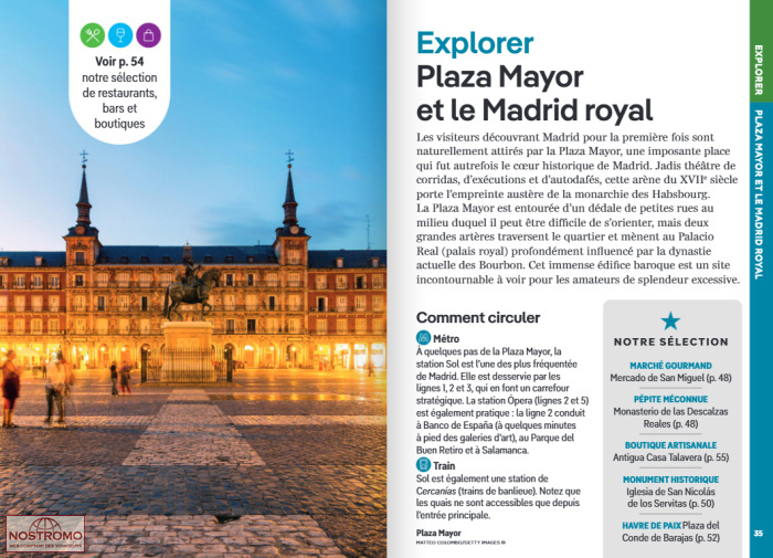 Des suggestions de balades et des itinéraires thématiques : cœur historique de Madrid, le quartier multiculturel de Lavapiés, shopping de luxe à Salamanca, l'héritage du roi Carlos III...
