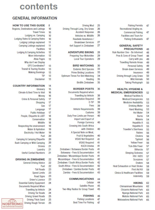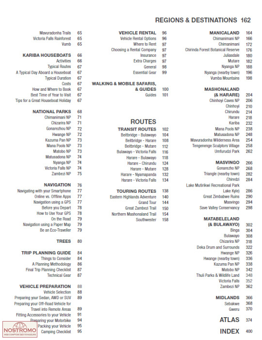 * Detailed Destinations: All destinations in Zimbabwe are described in detail, including available facilities, services, and activities.