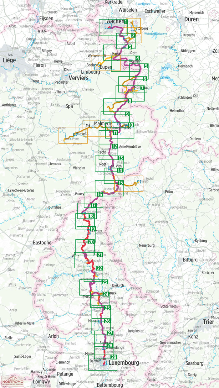 L'itinéraire cyclable germano-belge par excellence ! Sur les 125 kilomètres de la Vennbahn, vous traverserez l'Eifel et les Ardennes sur des pistes parfaitement entretenues, sans aucune montée abrupte. L'ancienne ligne de chemin de fer reliant Aix-la-Chapelle, vieille ville impériale, à Troisvierges au Luxembourg est aujourd'hui l'un des plus beaux itinéraires cyclables ferroviaires d'Europe. Viaducs et hauts remblais offrent des panoramas à couper le souffle à chaque tournant. Le long de la frontière germano-belge, vous découvrirez de fascinantes histoires de contrebande, et les nombreux vestiges du passé ferroviaire confèrent à cette balade un charme particulier. La beauté naturelle des vallées de Rureifel, de l'Our (qui marque la frontière avec le Luxembourg) et, bien sûr, des Hauts Flandres (Hohes Venn), contribue également à l'attrait de cet itinéraire. Au terme de la Vennbahn, prolongez votre escapade d'une centaine de kilomètres et rejoignez la ville de Luxembourg, dont la vieille ville historique est inscrite au patrimoine mondial de l'UNESCO, pour une destination inoubliable.