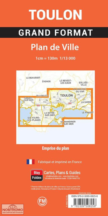 Le plan de ville de Toulon Grand Format est constitué d'un plan plié détachable et d'un index fourni sous forme de livret .